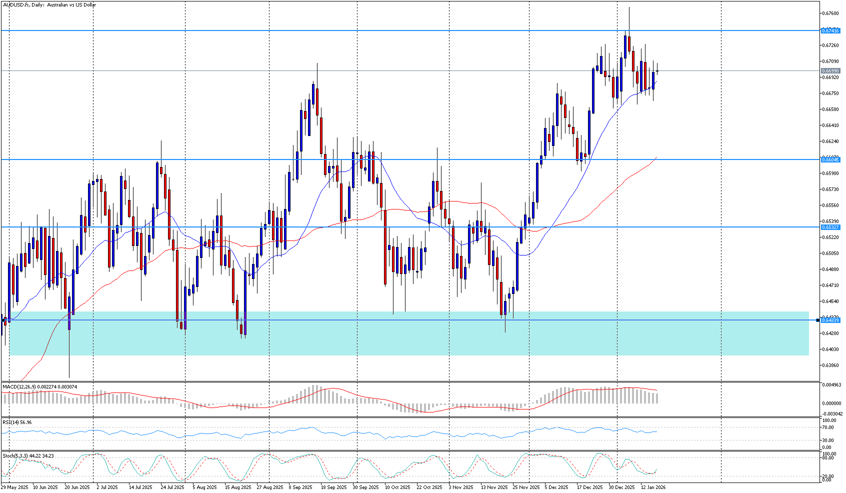 Měnový pár AUD/USD nadále čelí prodejnímu tlaku a pohybuje se pod psychologickou hranicí 0,6700, přičemž se zatím nedokáže stabilně vrátit nad 20denní jednoduchý klouzavý průměr. Tržní nálada zůstává opatrná, a to zejména kvůli přetrvávajícím…
