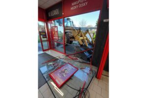 Bagr narazil do obchodního domu v Havlíčkově Brodě