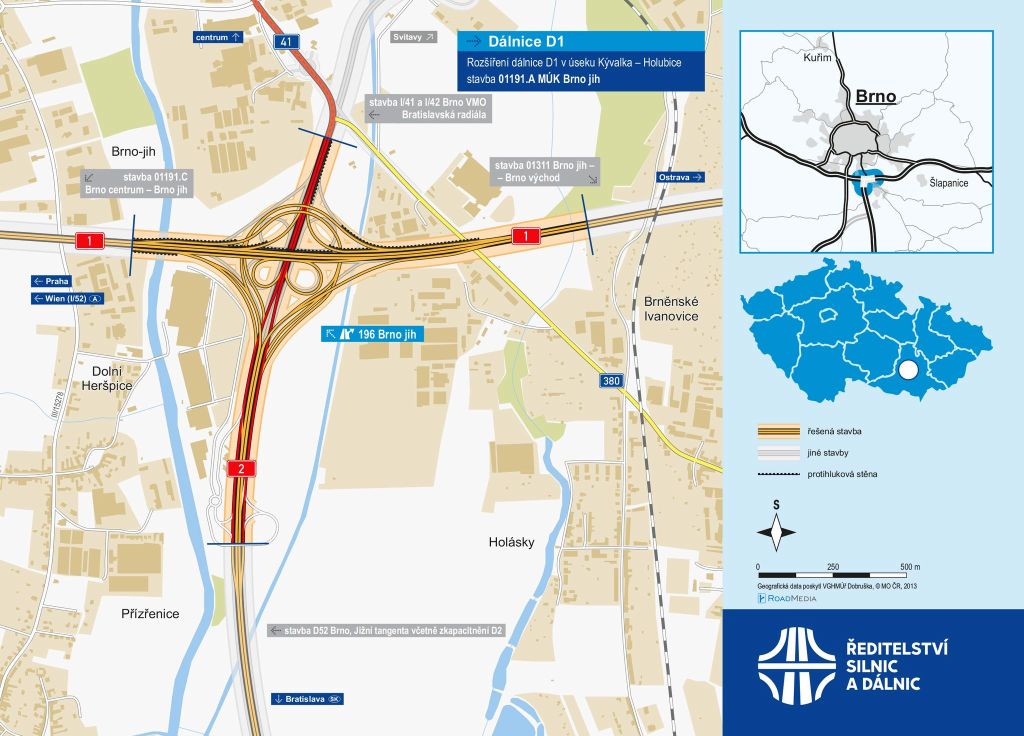 Po celou dobu úprav se bude na D1 jezdit ve dvou pruzích v každém směru, přesto se musí řidiči připravit na významná dopravní omezení. V dalších letech počítá ŘSD s rozšířením D1 na celém 30 kilometrů dlouhém úseku mezi Kývalkou a Holubicemi. „MÚK Brno jih je jednou z nejvytíženějších mimoúrovňových křižovatek v České republice. Denně tudy projede až 80 tisíc aut včetně vysokého podílu tranzitní nákladní dopravy. Stávající uspořádání již nevyhovuje současným ani budoucím dopravním nárokům. Přestavba na 3+3 pruhy na D1 umožní efektivnější rozdělení dopravy, zkrátí se doba průjezdu a zvýší bezpečnost. Projekt počítá i s tím, že v budoucnu by se rampy a připojovací pruhy ještě mohly rozšířit, aby se dalo v případě potřeby kapacitu dále navýšit,“ řekl ministr dopravy Martin Kupka.