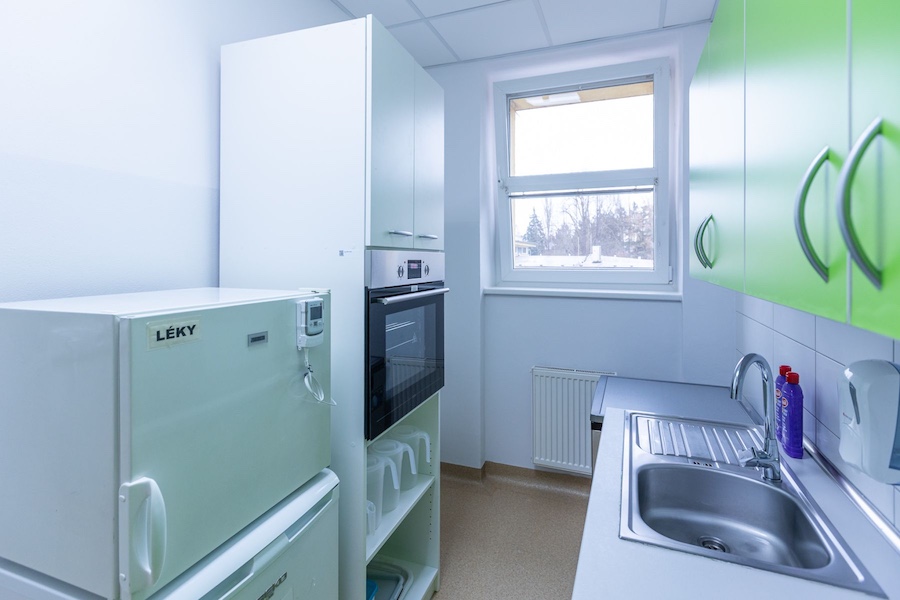 Zcela novou podobu dostaly také společné toalety a umývárna. Jsou plně bezbariérové, nabízejí více prostoru a soukromí a přibylo i vybavení pro imobilní pacienty – včetně velké sprchy umožňující použití sprchovacího lůžka. Modernizací prošlo i zázemí zdravotnického personálu, které nyní disponuje vybavením pro vyšší hygienický standard provozu.