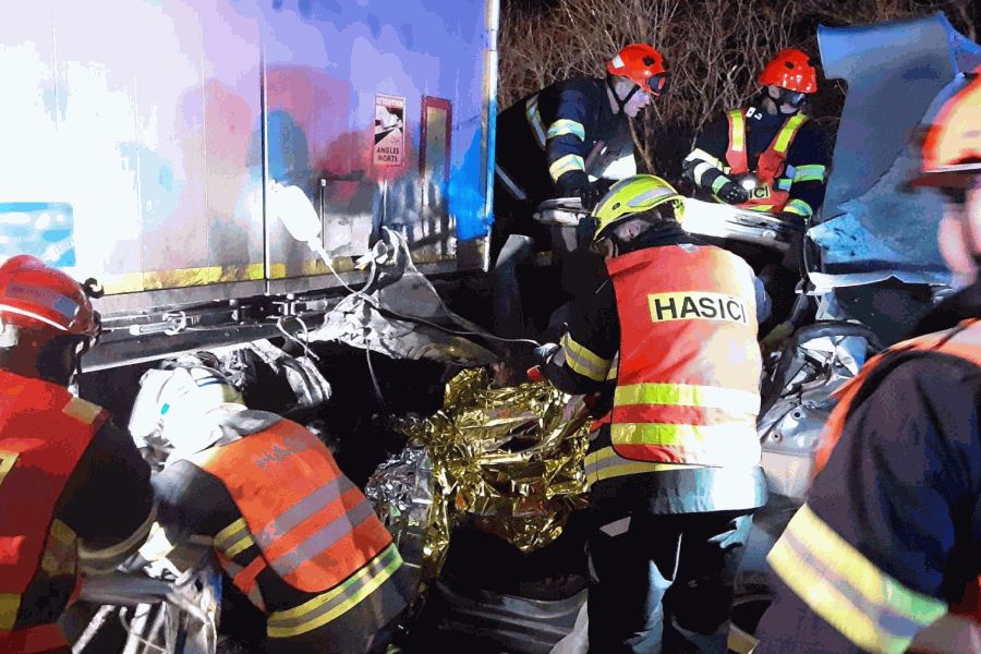 BŘECLAV – Ve čtvrtek po půl třetí ráno hasiči vyslali jednotky k vážné dopravní nehodě osobního auta a kamionu na dálnici D2 kousek od hranic se Slovenskem. Hasičské jednotky z Břeclavi a Podívína musely ve spolupráci se slovenskými hasiči vyprostit dva těžce zraněné muže.